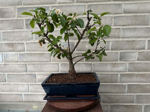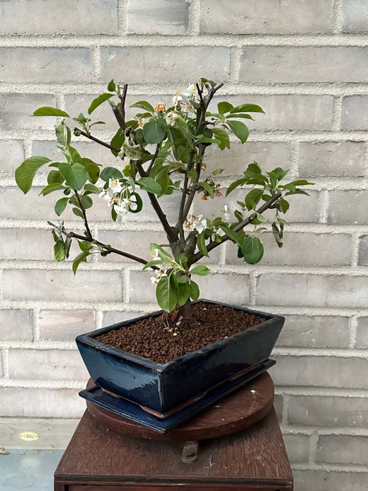 Bonsai Malus, Apfel, ca. 10 Jahre alt, Schale mit Unterschale