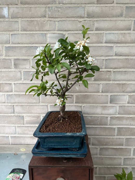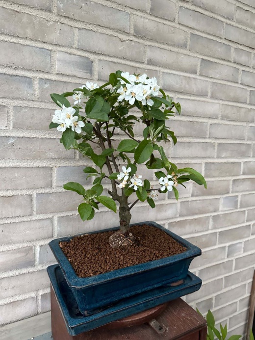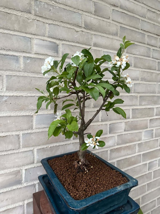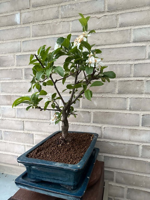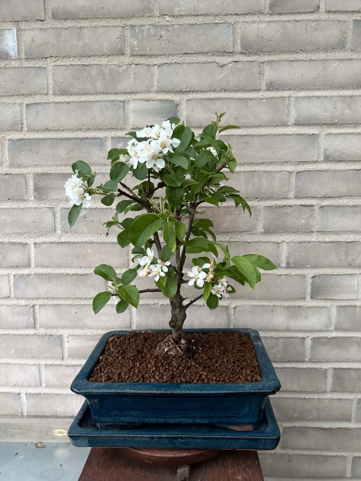Bonsai, Malus, Apfel, ca. 12 Jahre alt, Schale mit Unterschale