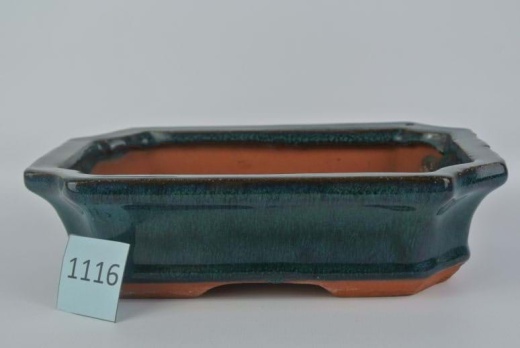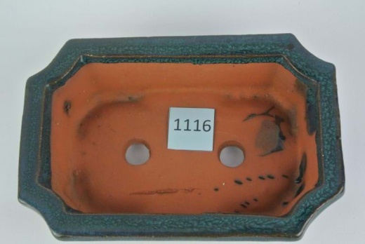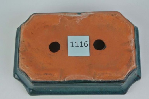 Bonsaischale, grün, achteckig Zustand: Neuwertig Innenmaße: 17 x 10 x 4 cm (Länge/Breite/Höhe) Außenmaße: 20 x 13 x 5,5 cm(Länge/Breite/Höhe) 2 Bodenlöcher