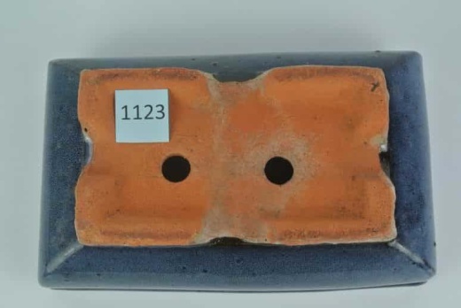 Bonsaischale, blau, rechteckig Innenmaße: 21,5 x 12,5 x 6 cm (Länge/Breite/Höhe) Außenmaße: 23,5 x 14,5 x 7,5 cm(Länge/Breite/Höhe) 2 Bodenlöcher